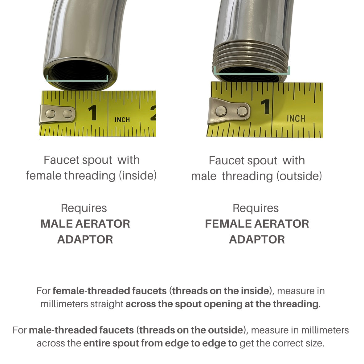 Measuring your faucet aerator ensures you choose the right adaptor (or confirm you don’t need one at all). Use a simple ruler or caliper to measure in millimeters: