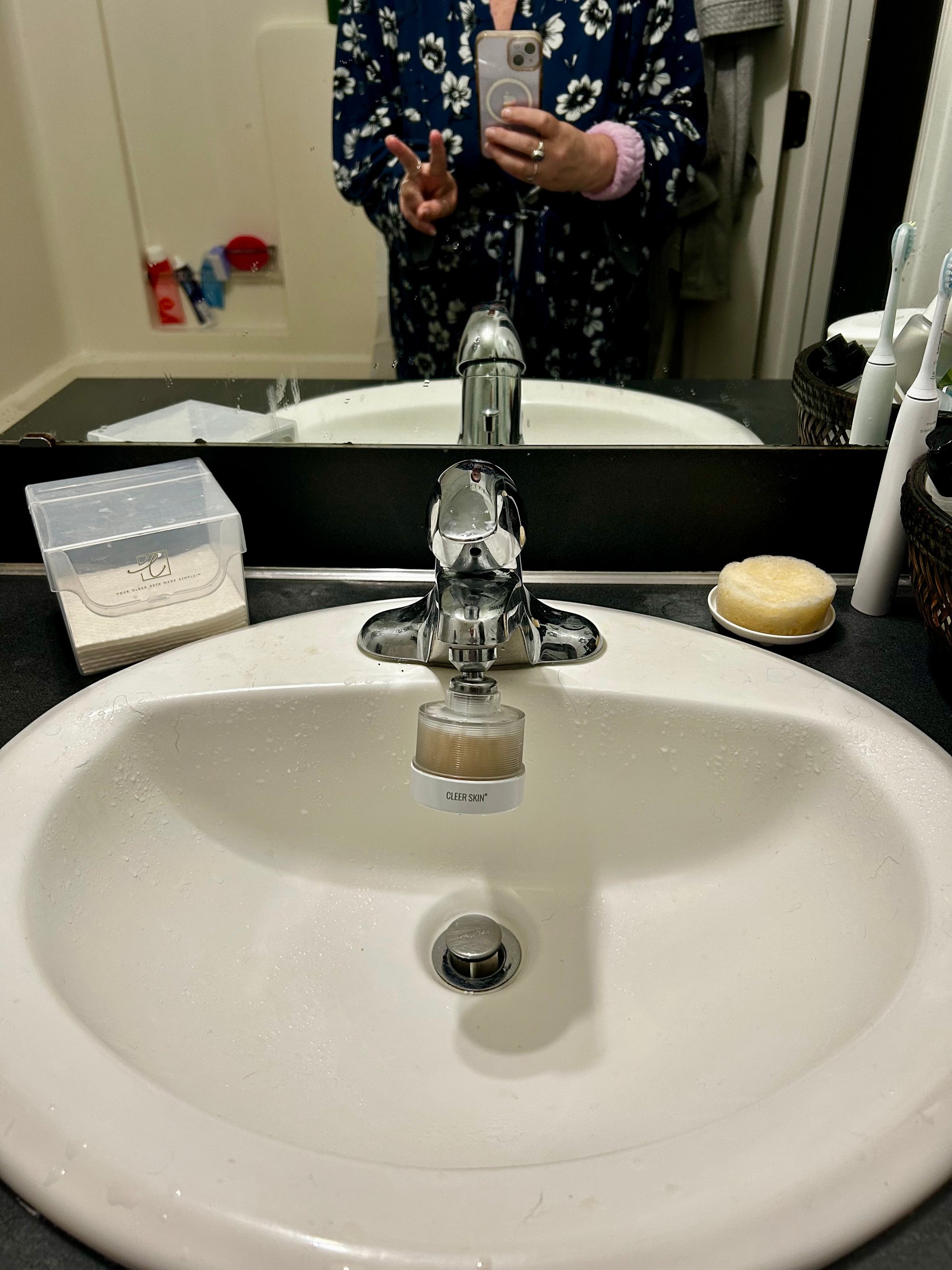 It effectively removes chlorine, rust, sediment, and even larger microplastics that can dull your glow and throw off your skincare routine.