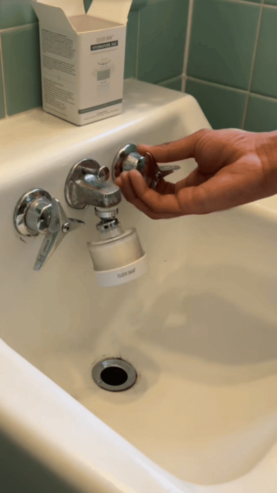 HydraPure 360™ upgrades your faucet & transforms ordinary tap water into a skincare-ready stream that fits seamlessly into your routine—no extra steps, just better water.